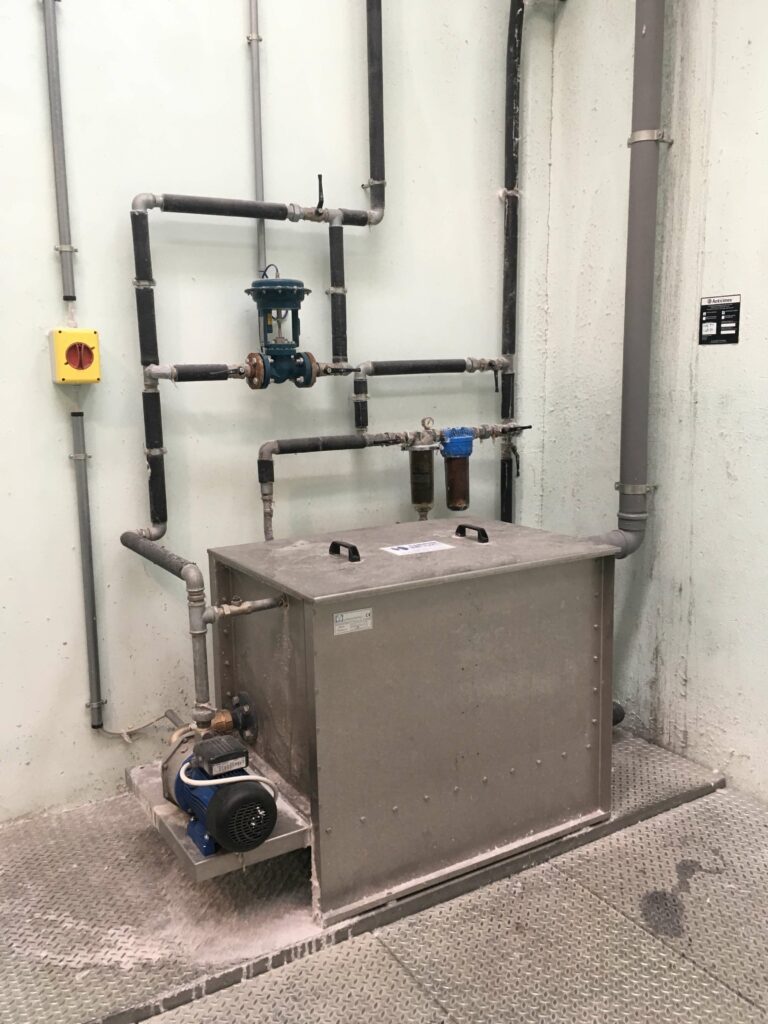 Adeguatamente collegata ai sistemi di raccolta acque dell’impianto di umidificazione, questa vasca ottimizza i consumi d’acqua ed annulla gli sprechi idrici.