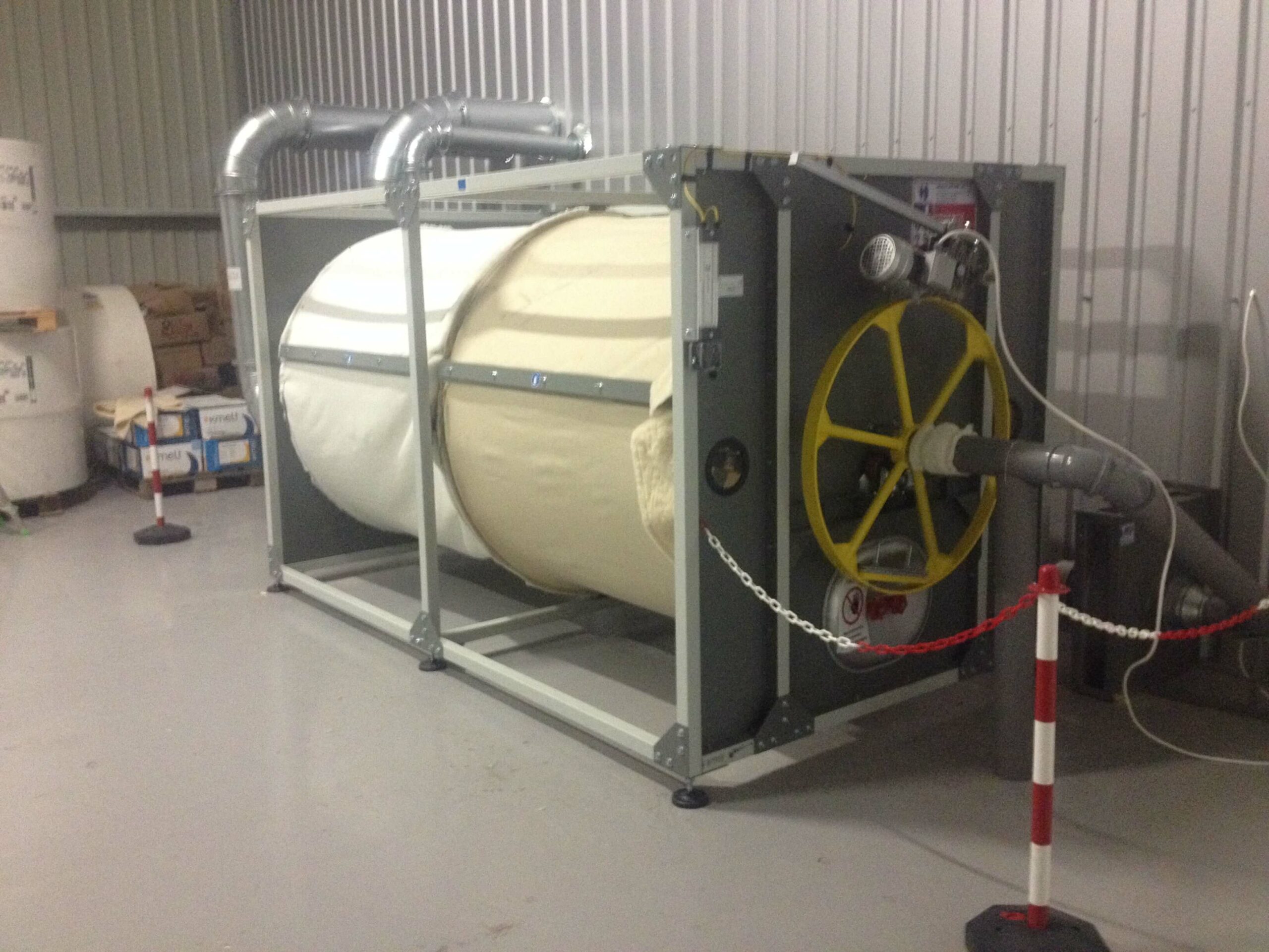 Фильтр также может быть установлен в помещении без защитной камеры, так как воздух выходит из перегородки фильтра полностью чистым и без примесей. Машина оснащена системой безопасности, которая контролирует правильное функционирование внутреннего вращения, а для специальных применений — системой продувки, которая обеспечивает постоянную очистку механизмов движения.